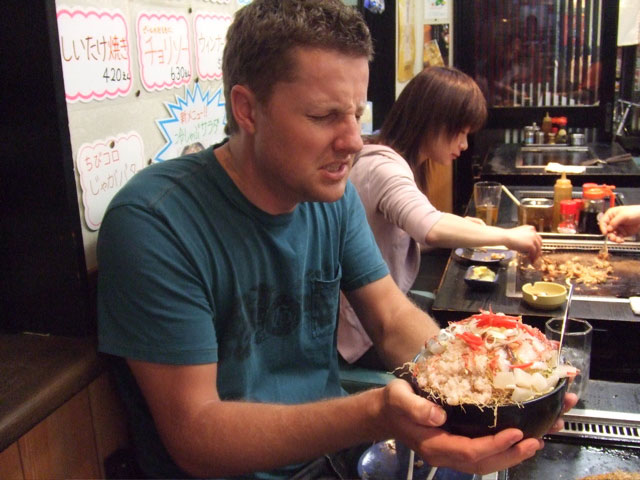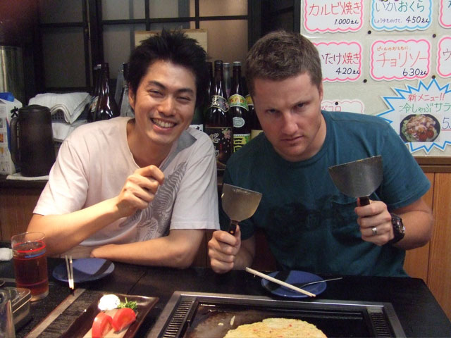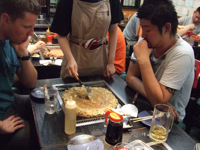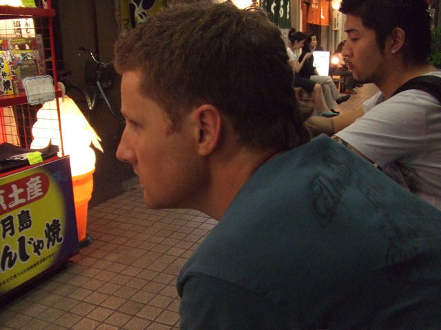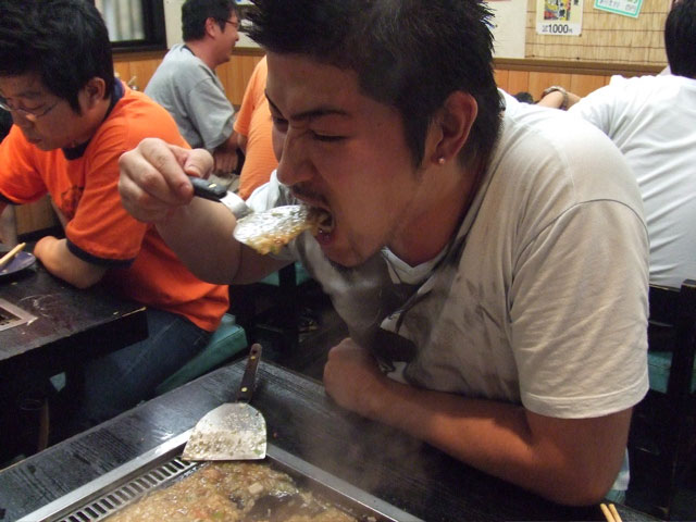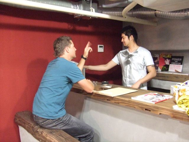 ![]() Shuichi examines the lighting situation ![]() one of the models gets her picture taken on the stairs to the loft...with a camera phone ![]() view up towards the loft ![]() view of the loft ![]() rooms on the back of the loft ![]() a peek inside the far-right window of the picture above this one ![]() the bar in the kitchen ![]() Nishimoto and me playing dice ![]() me ordering a drink from Nishimoto ![]() Nishimoto and me waiting to get into the restaurant ![]() Shuichi and I waiting for the Osaka-style Okonomiyaki to cook ![]() me holding the huge bowl of Monjya ![]() Shuichi ready to eat the uncooked Monjya ![]() Nishimoto and me watching while the employee showed us how to cook Monjya ![]() Monjyayaki in its pizza-shape ![]() Nishimoto having an angry bite of the Monjyayaki |