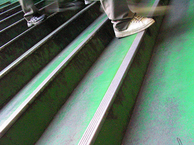 When I was taking the picture of the day here, I was finally approached by a man who worked for the store that these steps led out of. He asked what I was taking pictures of. I told him "green stairs". He then told me that wasn't too good since females are coming down the stairs. He was implying that I might be trying to take pictures up their skirts as they walk down the stairs. He told me that someone went inside and told him there was a foreigner taking pictures on the stairs. I told him that I would stop and then he started asking me questions. What I was doing in Japan, and that if I was a photographer, why was I using such a crappy camera. I was shooting with just a point and shoot. Nothing fancy.