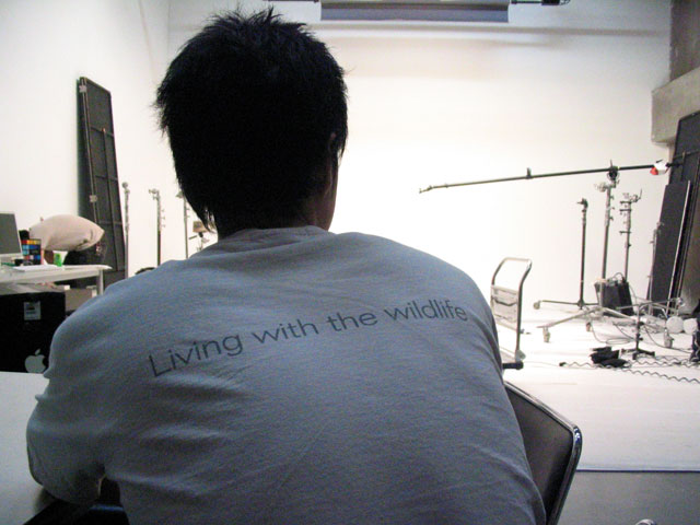 All three of us were really tired today. Especially Nishimoto kun. That kid needs to learn to go to sleep before morning. And by the way, from now on, Nishimoto will be known as 24, Mr. 24, 24kun, or AllDay. Even though the "Nishi" in his name technically means "west", "ni" also means 2 and "shi" means 4. He has a really cool "24" tattooed on his left arm. Nishimoto is "24". The picture today is of Tsunoda san, as he rested while we were breaking down the set. We all need to learn to "Living with the wildlife".