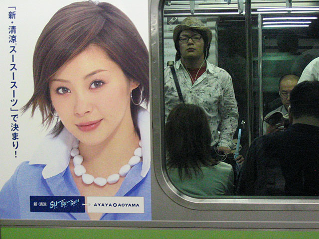 Today's photoshoot was really cool and really long! It was for a calendar, so the model had 7 different looks and each look had unique lighting, so it took a long time and it was quite involved. The model was Matsuura Aya, but she is known as Ayaya in Japan. She is quite famous. In fact, as I left the studio and was getting on my train, her face was on huge posters every 20 feet on the outside of my train, advertising something. I took a quick picture of the poster before the train sped off after exiting.